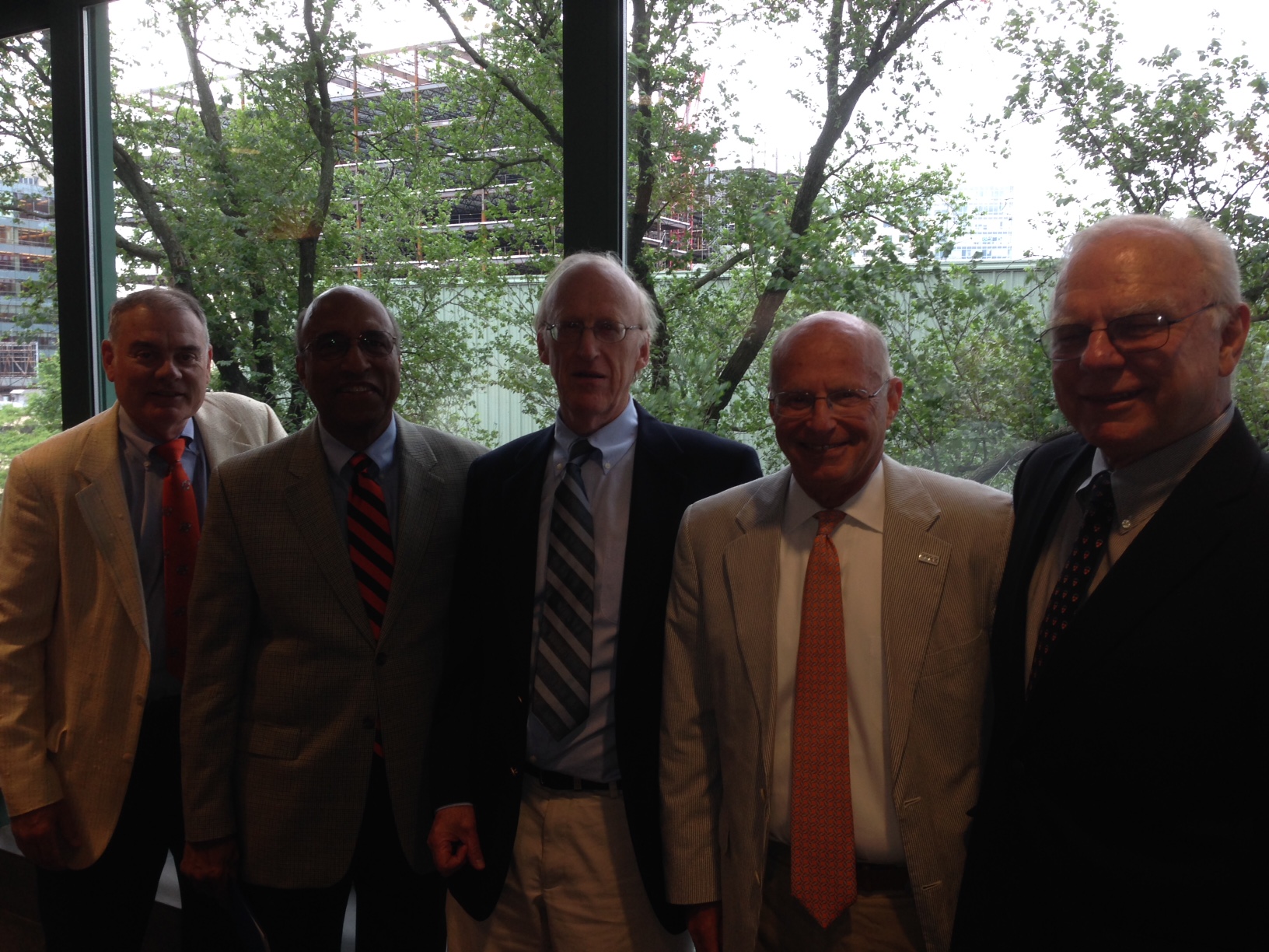 June, 2014: The photo shows (L-R) Jim Parmentier, Owen Mathieu, John Hart, Henry Von Kohorn, and Rick Bowers at Boston's Fenway Park for June 9, 2014 PANE (Princeton Association of New England) Annual Meeting. The meeting's principal speaker was retiring Princeton Athletic Director Gary Walters '67, and the meeting also featured Owen presenting the 2014 Princeton Prize awards to Boston area high school students.