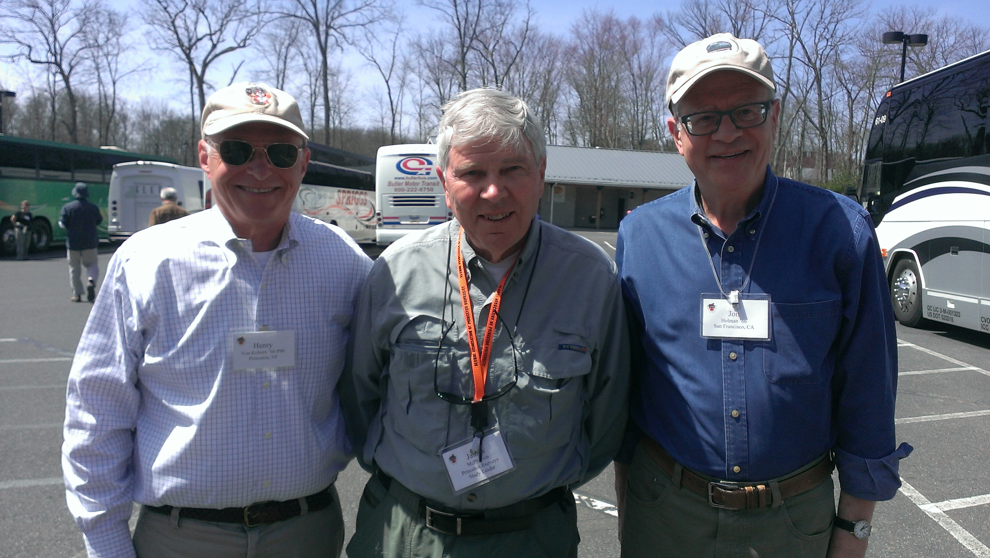 Henry Von Kohorn, American Civil War historian and Princeton Professor Emeritus James McPherson, and Jon Holman, at the Princeton Journeys "Walking Gettysburg" trip from April 10 to April 12, 2015. Bill Leahy's wife Chris and son Will '04 were also on the trip. Jon reports "Prof. McPherson marched us through the fields and remembered every regiment by number and regiment commander. Quite an amazing guy."