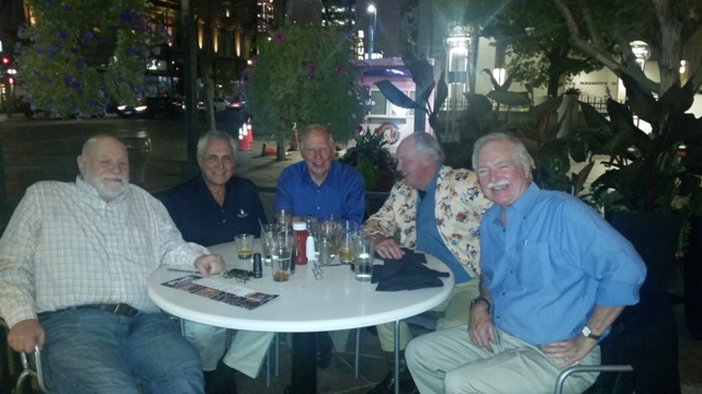 September 21, 2016. Bud D'Avela writes, "The best thing about a terrific 50th Reunion with too little time to talk to everyone as long as you'd like, is that you promise yourself to reach out to classmates when you're travelling, and to spend more time together. So when I was going to be in Denver on a speaking engagement I reached out to clubmate Tom Reid and we quickly organized this group -- Benghauser, D'Avella, Reid, Hoster and Nicholson -- at the Rock Bottom Brewery near the hotel on Tuesday, September 20. I heartily recommend it.