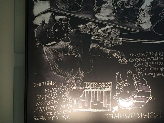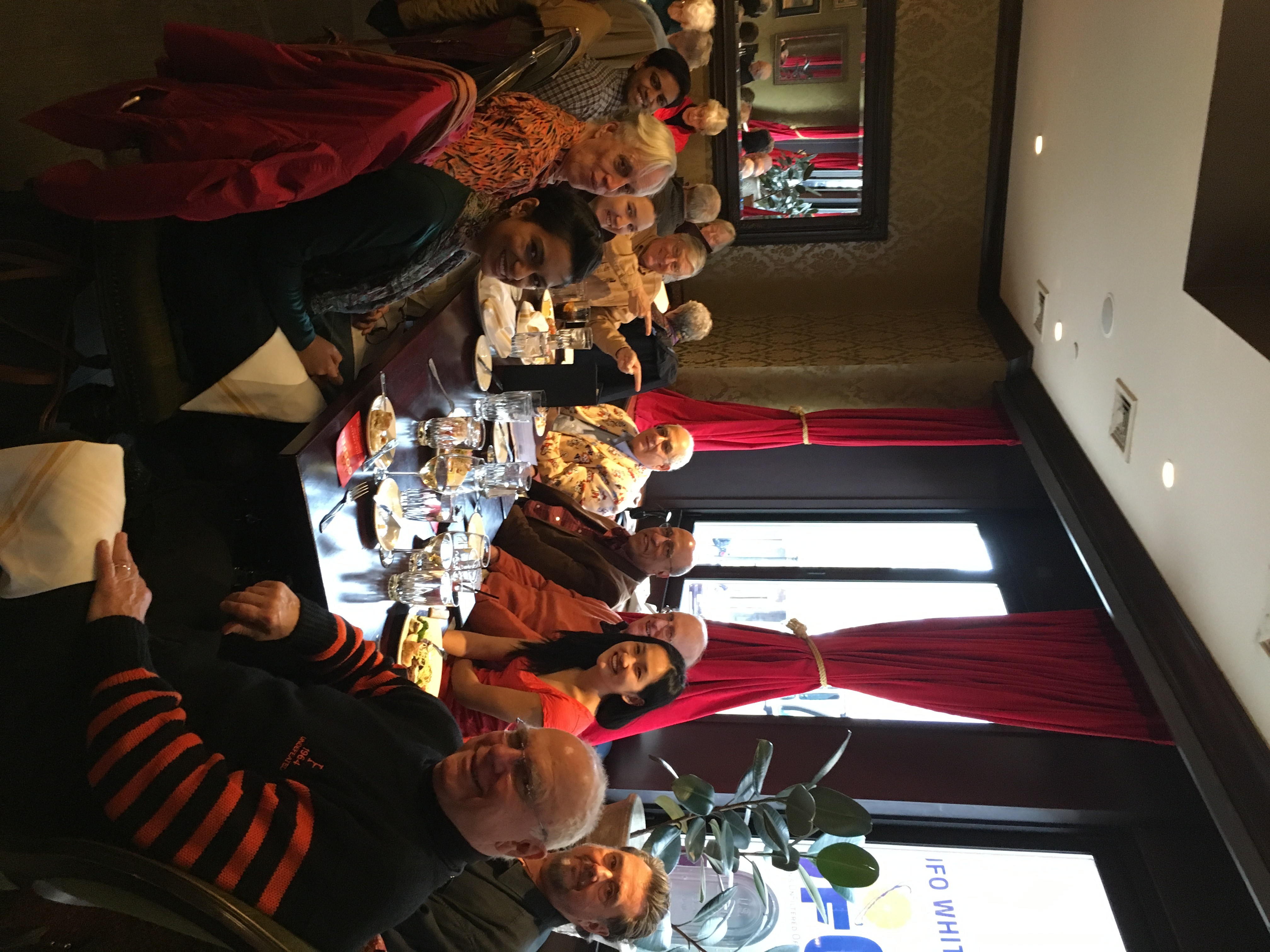 October 15, 2018. Lanny Jones was staying at the Cambridge, MA Charles Hotel (Harvard's attempt at a Nassau Inn equivalent) and snapped this photo of artwork in the room. Lanny spotted Mike Spence among the Nobel Prize winning economists that the Econ 101 students will be expected to master. This is Harvard, so one economist's name is misspelled. October 5, 2018. On October 4, 2018, 21 '66 classmates met for lunch at Delancey Street Restaurant in San Francisco. This was the third San Francisco '66 event in the past 12 months. Tom Hanks '66, a career U.S. Geological Survey scientist, was convinced to speak to the group about earthquakes and the logic for earthquake insurance, which he did with great skill. His Landon classmate and Princeton roommate Frank Nuessle completely surprised Tom and flew out to San Francisco from Philadelphia just for the event, introducing Tom with much humor and a very funny high school poster. Also visiting from the east coast were Jim Parmentier and Ken Krosin. The other highlight of the gathering was welcoming Peter Waring, who by coming to the lunch attended his first '66 and Princeton event since graduation. Kudos to Tim Smith for coming up with the idea of having a class speaker. Here is the list of 21 attendees: Tom Adams, Warren Browne, Ord Elliott, Michael Goldstein, Tom Hanks , Jon Holman, Hank Hulter, Krist Jake, Ken Krosin, Mark Levine, David Marshak, Tom Norris, Frank Nuessle, Jim Parmentier, John Scully, Lemoine Skinner, Tim Smith, Tom Tureen, Peter Waring, Jeff Weiss, Joe Zizzi.
