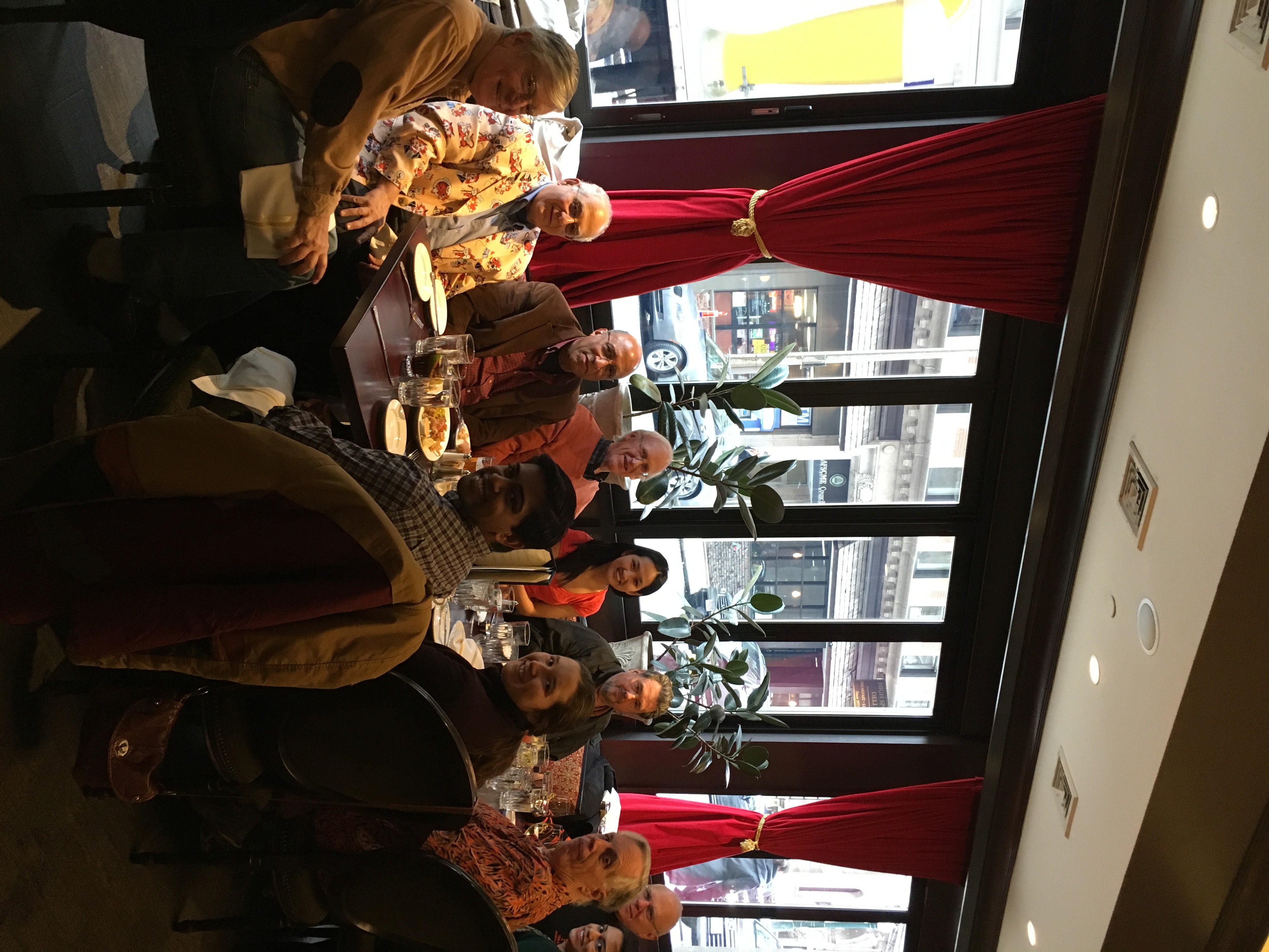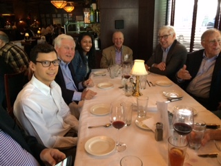 February 15, 2017. Seven of us hosted lunch for four Boston-area AlumniCorps Project 55 fellows from our 2016 Grandchild class, meeting downtown at the Carrie Nation Restaurant and Cocktail Club for our new traditional Third Thursday lunch (join us if you're in town). The fellows have impressive accomplishments, activities, and career plans and are great conversationalists as well. This was the first 1966-2016 event since the 50th. Clockwise in the first photo from Rick Bowers in the striped sweater at the head of the table and without class identification, we have: Rick, Nina Narayanan, Ned Groth, Clara Kerwin, Sanjay Rao, Mike Tooke (head of the other end), Carl Corey (in 50th blazer), Owen Mathieu, John Hart, Emilee Tu, and David Williams. For more about the Boston Project 55 fellows, click here and see Pages 5-6.