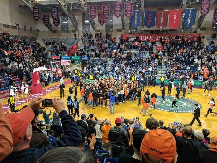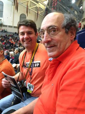 March 12, 2017. Leighton Chen reports "Class well represented at mens basketball team's historic win at Penn's Palaestra to capture the inaugural Ivy Championship tournament to cap a historic perfect basketball campaign. Team was 16-0 against Ivies. 14-0 regular season, 2-0 in tournament. Charles Plohn and his son, Kay and myself, Merideth and Henry Von Kohorn, and I'm sure, others were there. Also in attendance current Prez Eisgruber h66 and past Shirley h66. Overachieving women also made championship finals and will go to WNIT. Men play Notre Dame Thursday at 12:15 in Buffalo in the big dance." Charles Plohn adds "Other '66ers in attendance included Bert Kerstetter and his son Lincoln, Mary Lou and Jeff Shafer, and Matt Eastwick '92 k66."