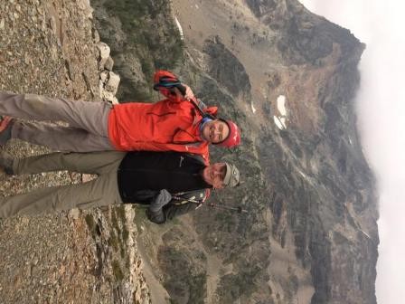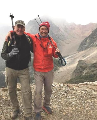 August 27, 2018. John Edie writes, "Hi gents - Frank MacMurray and I have been hiking in the Bugaboos (Canadian mountains) for the last six days. These are two shots at our last helicopter pickup today. Gail took the picture. Amazing mountains!"  August 27, 2018. Rick Bowers adds a note along with a photo and a debatable personal opinion, "I had lunch with Larry Owen and Alice (Lyman) Miller a while ago. Attached is a picture. We're not nearly as good looking as MacMurray and Edie." Rick has been spending the last year at the Stanford Distinguished Careers Institute.