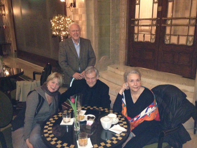 The photo shows what happens when globetrotting '66ers run into each other in a gin joint around the world. In this case, Shirley & Brian Breuel and Nancy & Guy Woelk have a drink at the bar in the Four Seasons Hotel in Budapest in November (2014).