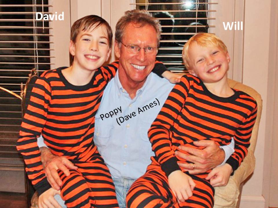 Dave Ames sent in a picture of himself and his two tiger cub grandchildren, David and Will.