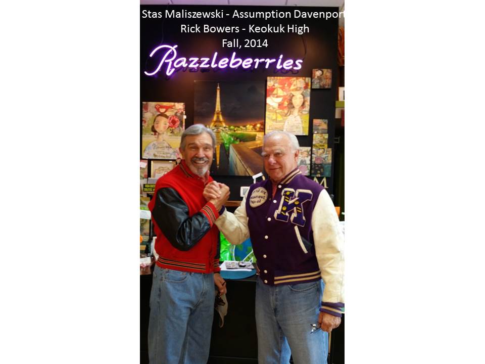 Rick Bowers and Stas' Maliszewski, last fall when those two traveled together to Keokuk, Iowa, to watch their respective high schools (Rick, from Keokuk; Stas', from Davenport Assumption) meet on the football field for the first time in 40 years.