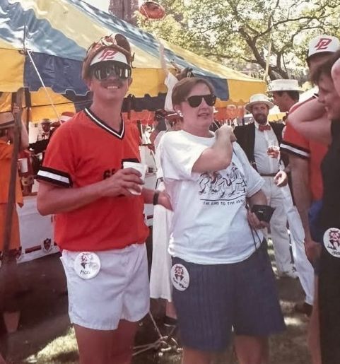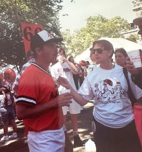 At the 25th Reunion following the Dial Lodge Alums vs Women's Varsity Softball Team rematch, won by Dial